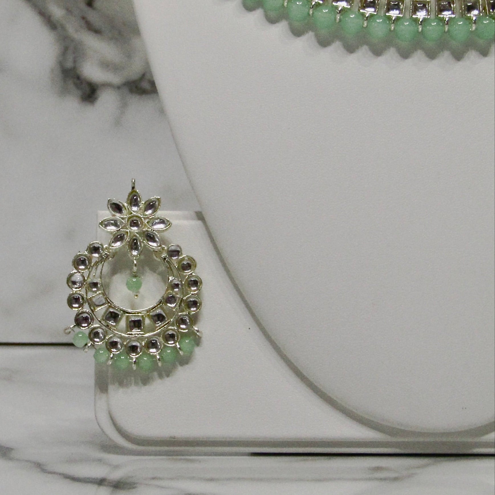Light Gold Faux Kundan Beaded Necklace Set in White, Navy, Dark Green, Mint and Maroon