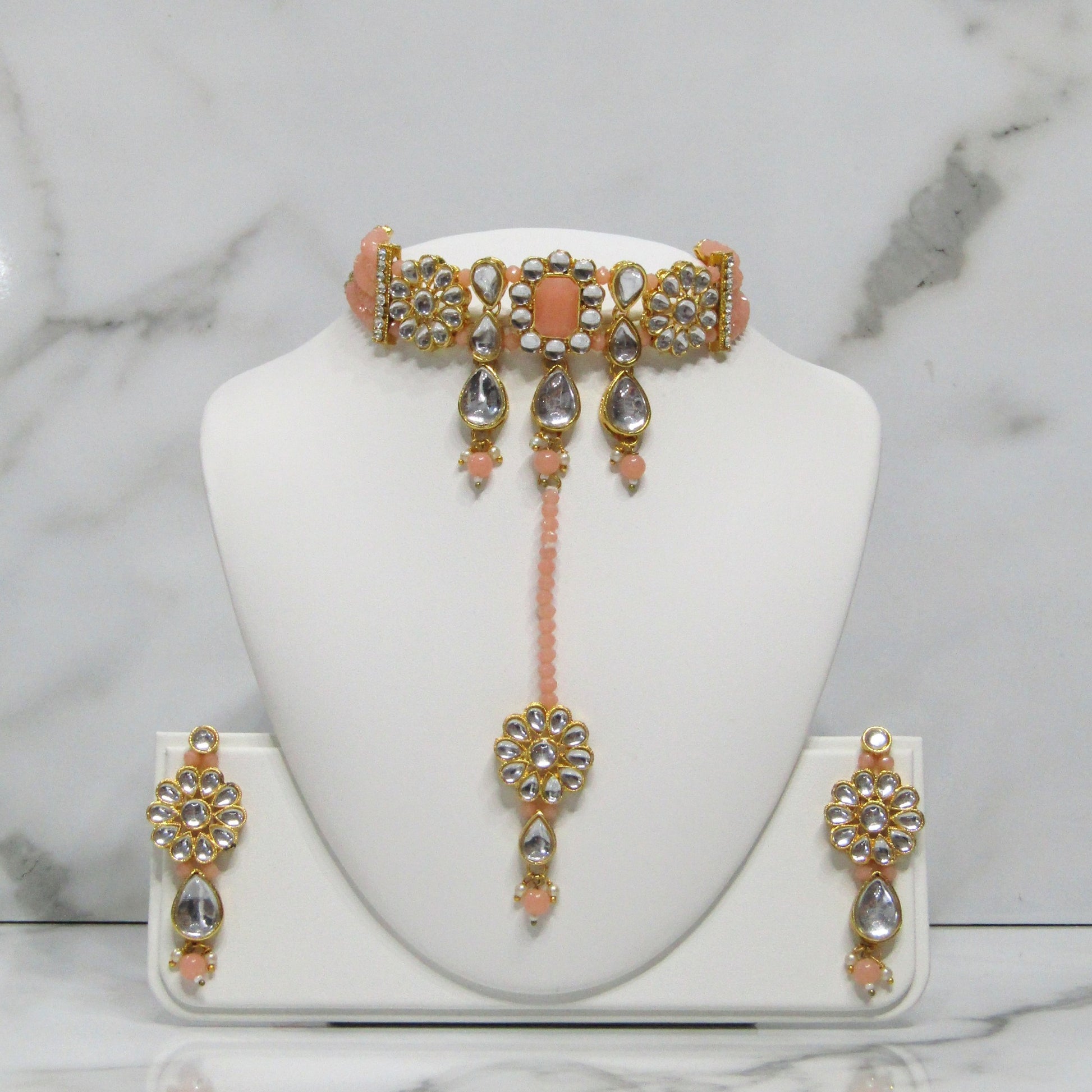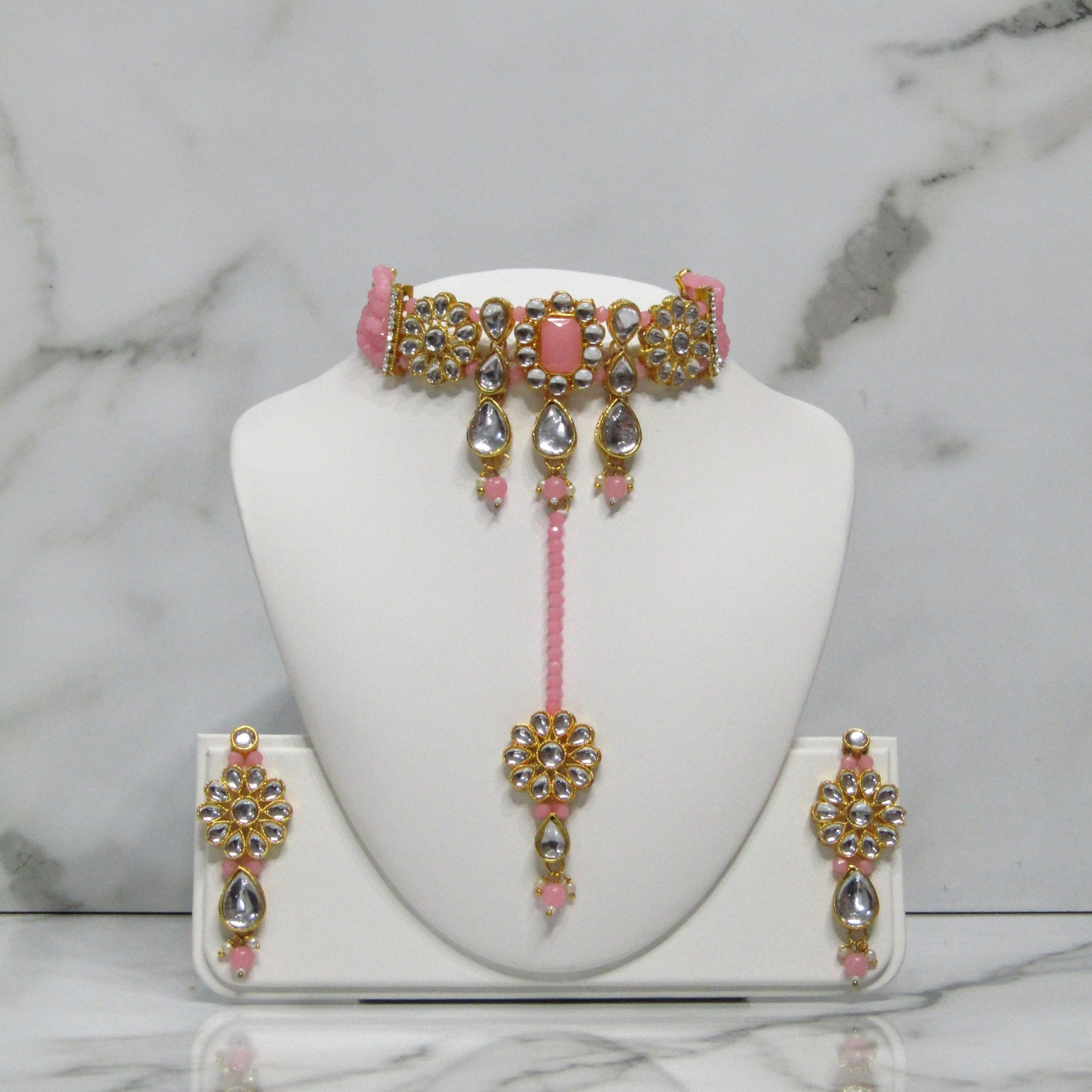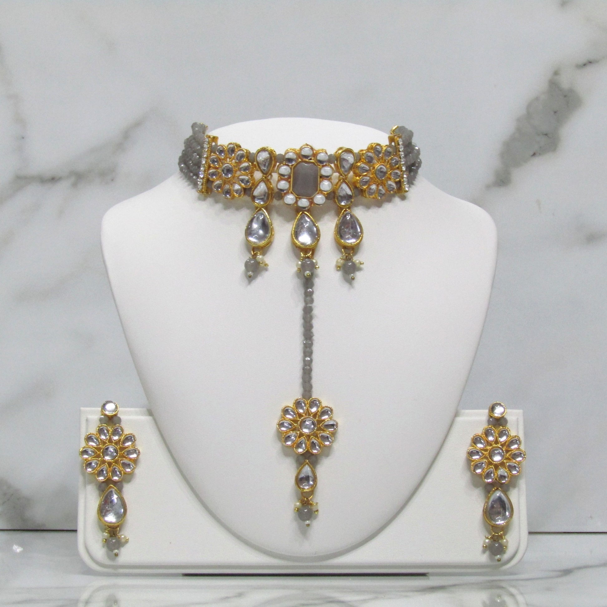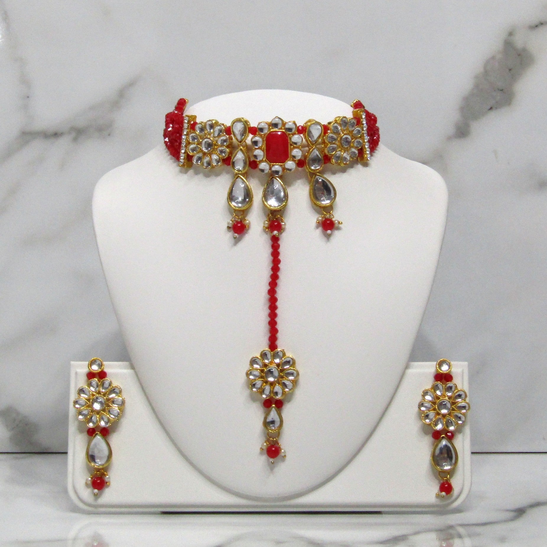 Set Includes: Choker Necklace, Earrings and Tikka.