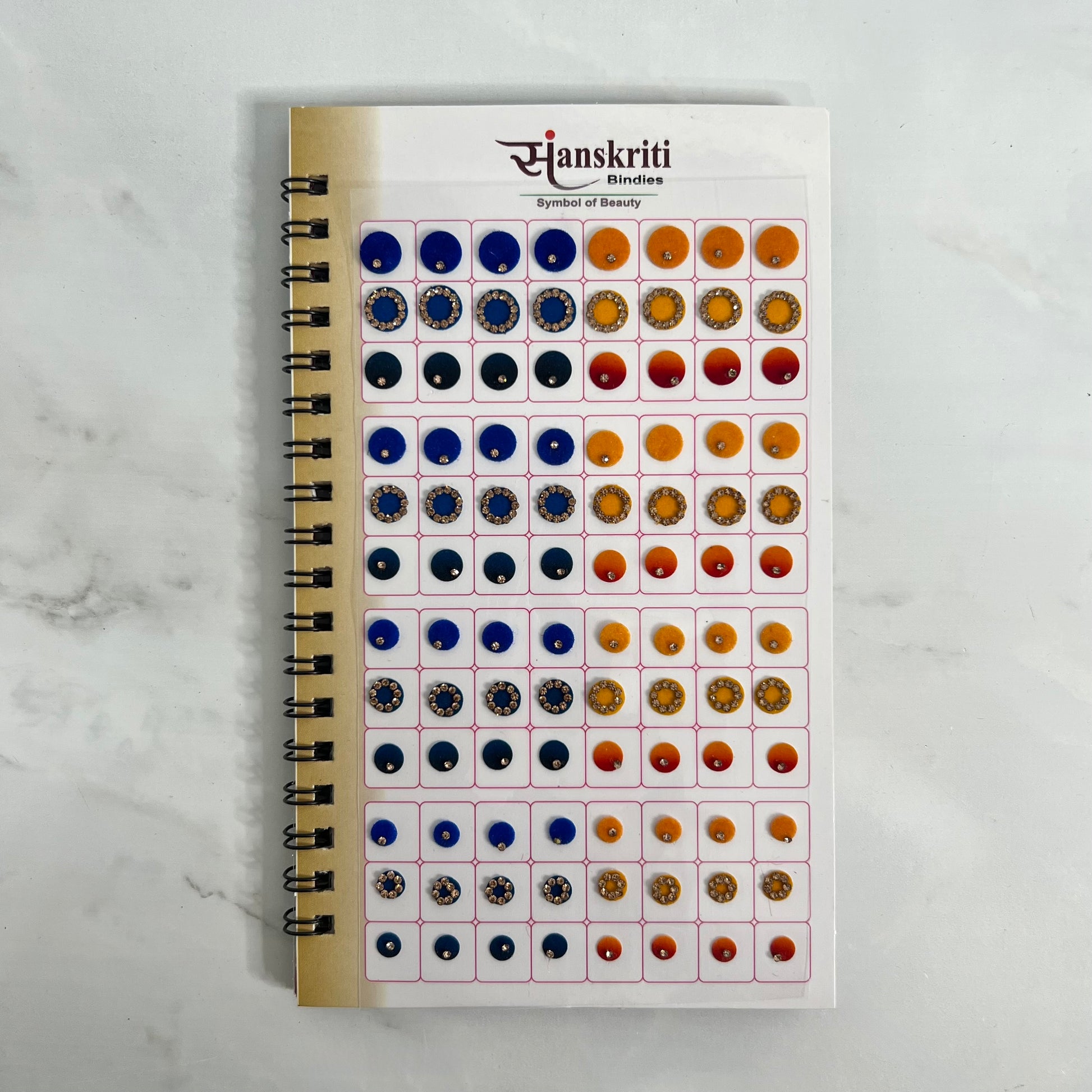 Bindi book with mixed ombre bindis styles including stone and plain designs.