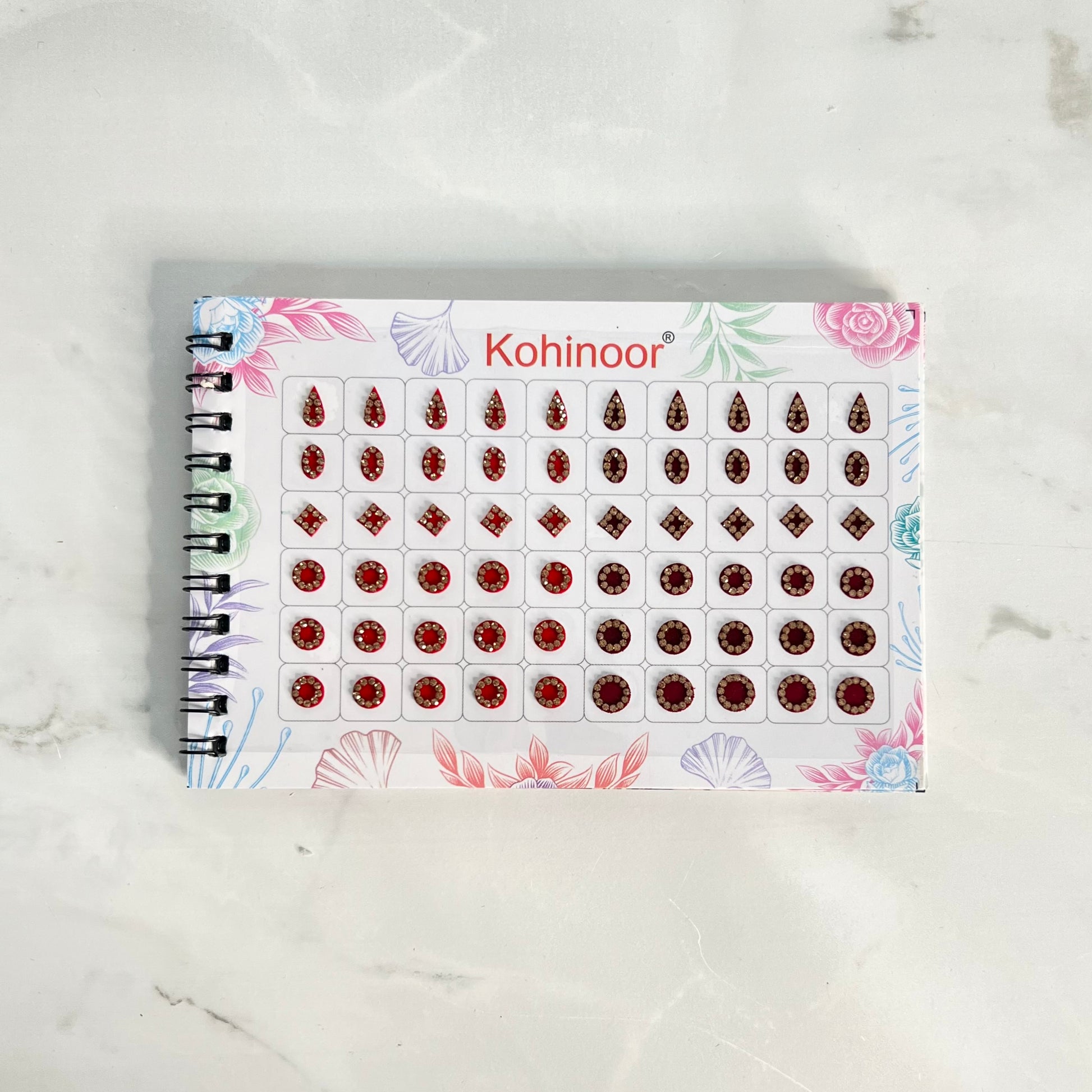 This book contains 5 pages; 4 pages of the multicolour bindis and 1 page of the red/maroon bindis.