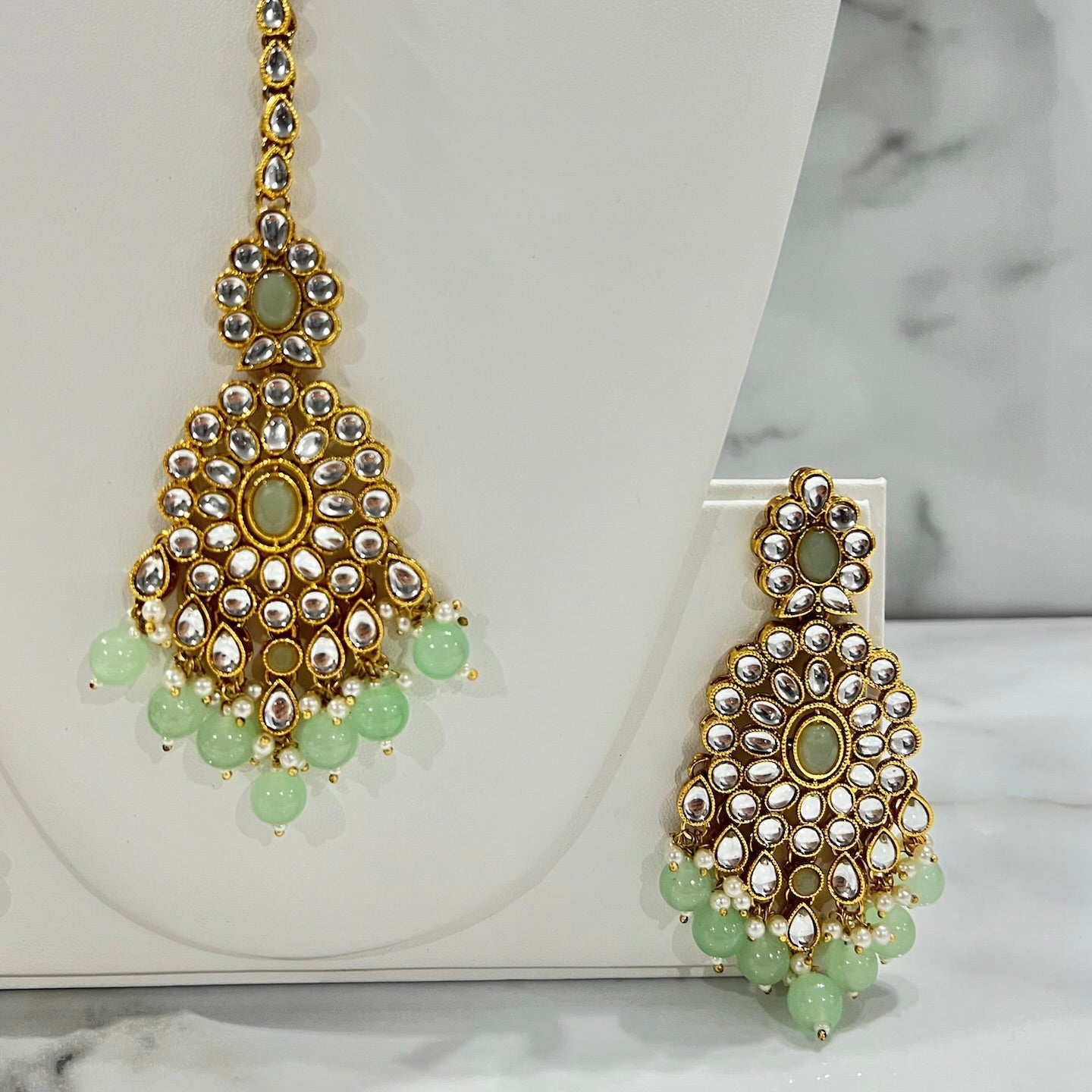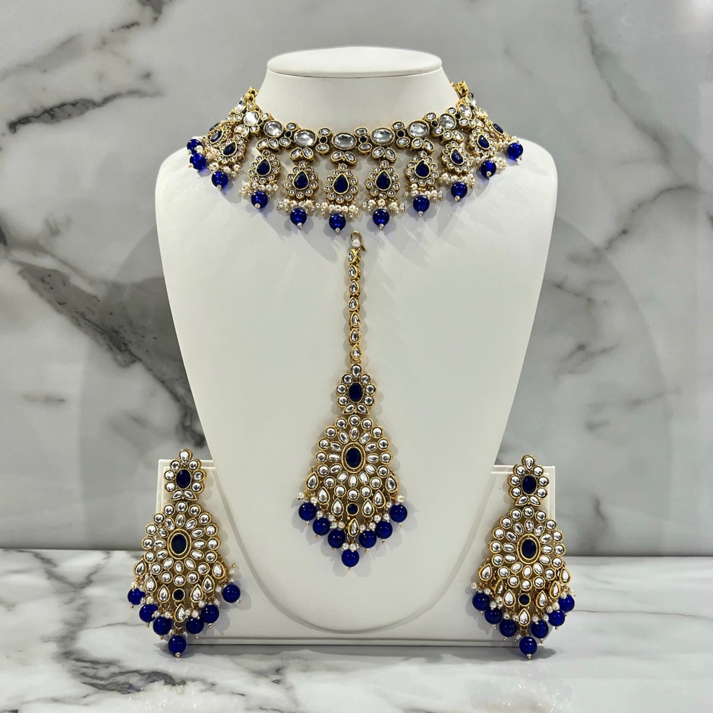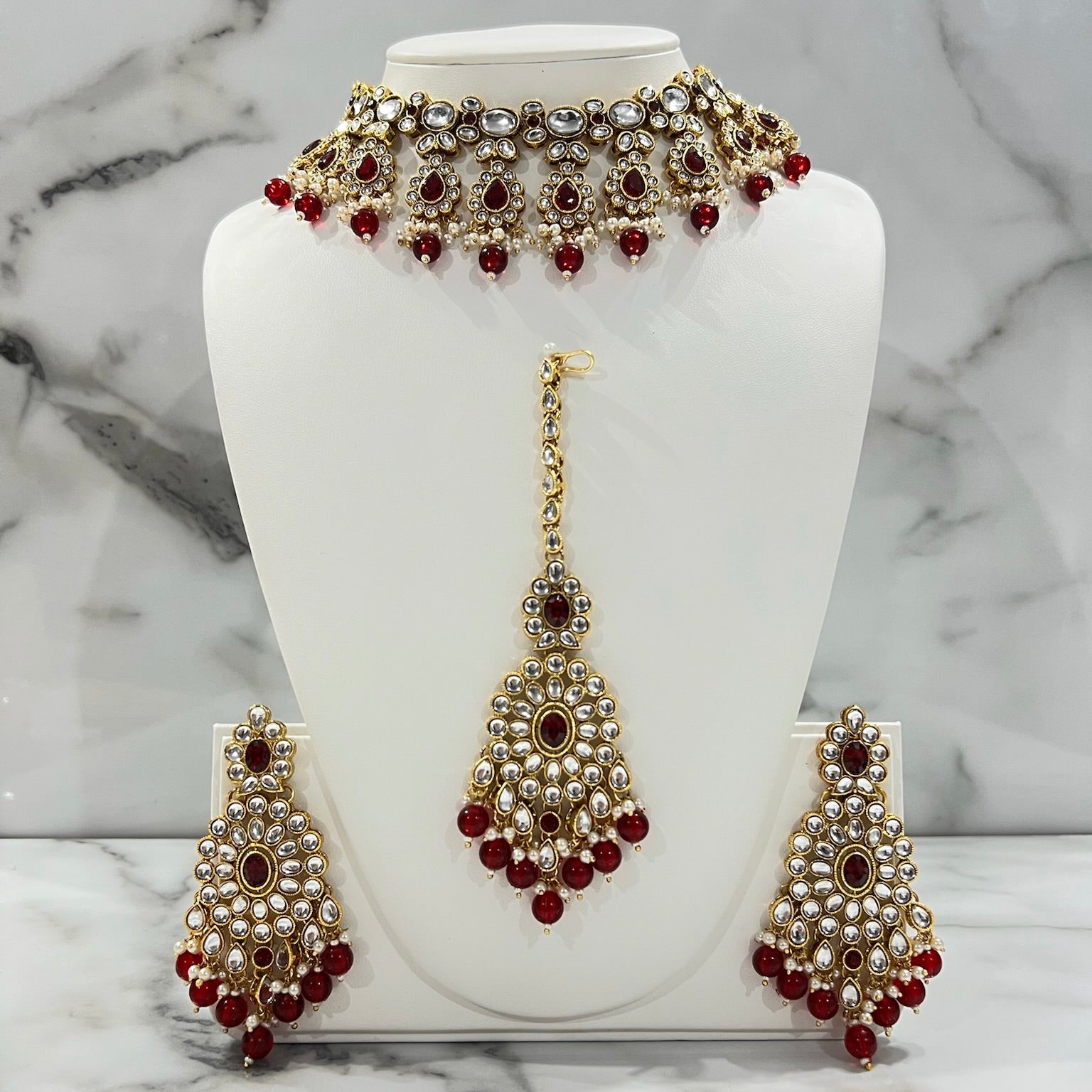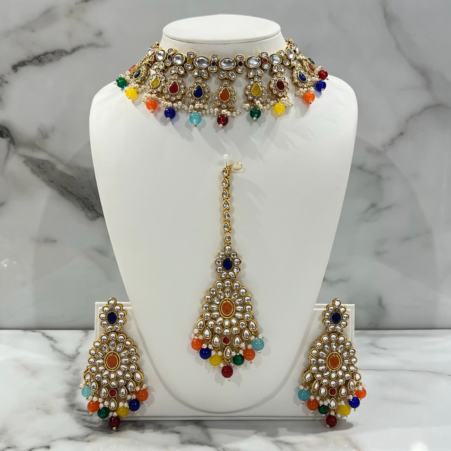 Set includes: Earrings, Tikka, and Necklace.