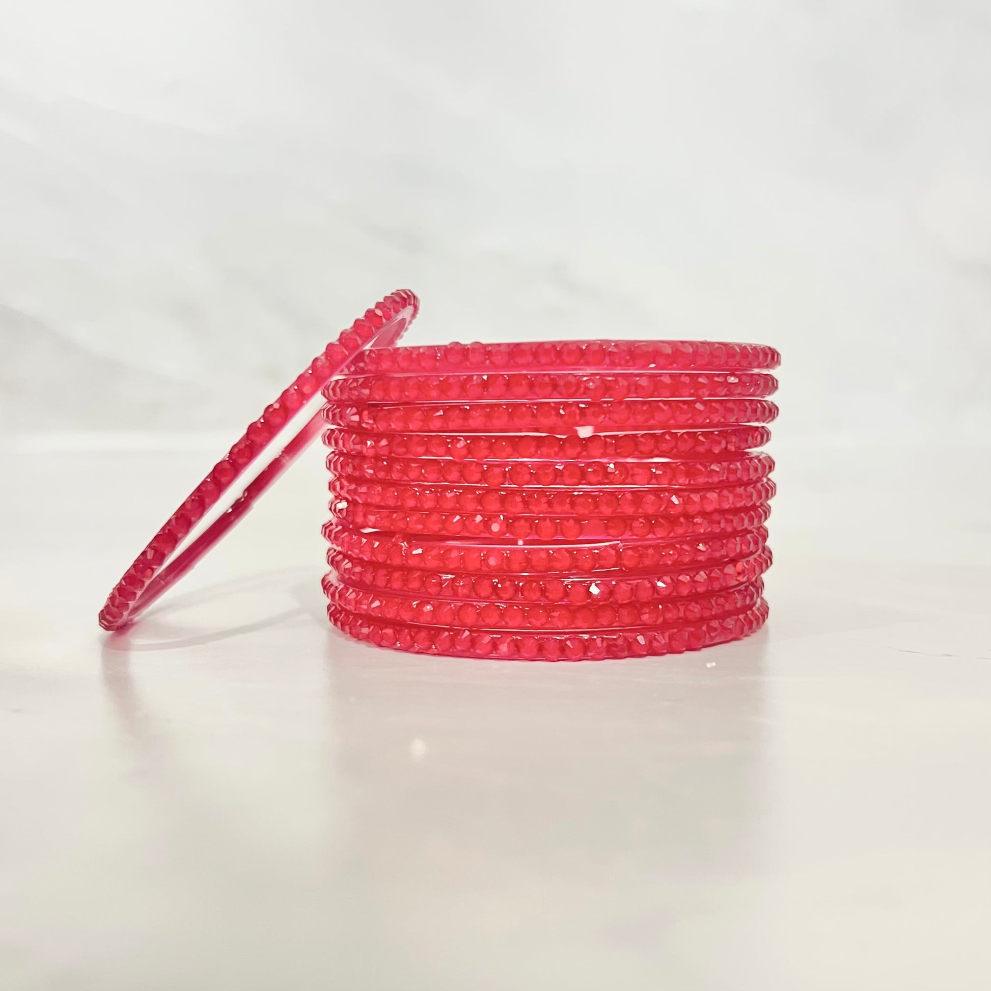 Set of 12 glass bangles with stone diamanté for added texture and sparkle.